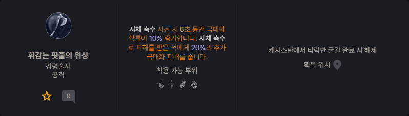 공격력, 시체스킬 레벨, 어둠기술 피해, 재사용대기시간감소, 이동속도