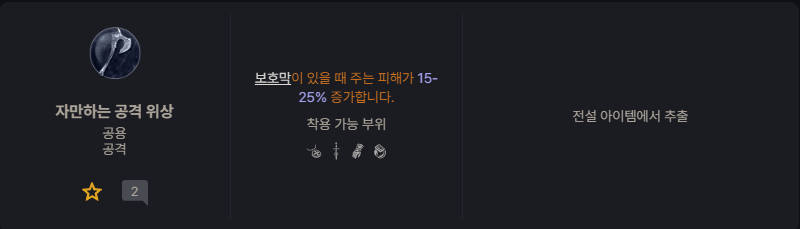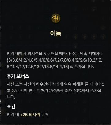 공격력, 어둠기술 피해, 총방어도, 생명력, 피해감소