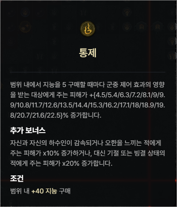 취약피해, 군중제어상태효과 영향받는 적에게 주는 피해, 지능, 감속적에게 주는 피해