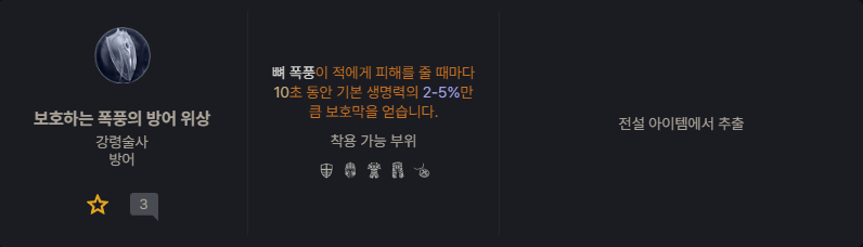재사용 대기시간 감소, 총방어도, 생명력, 모든 능력치, 노화 스킬 레벨